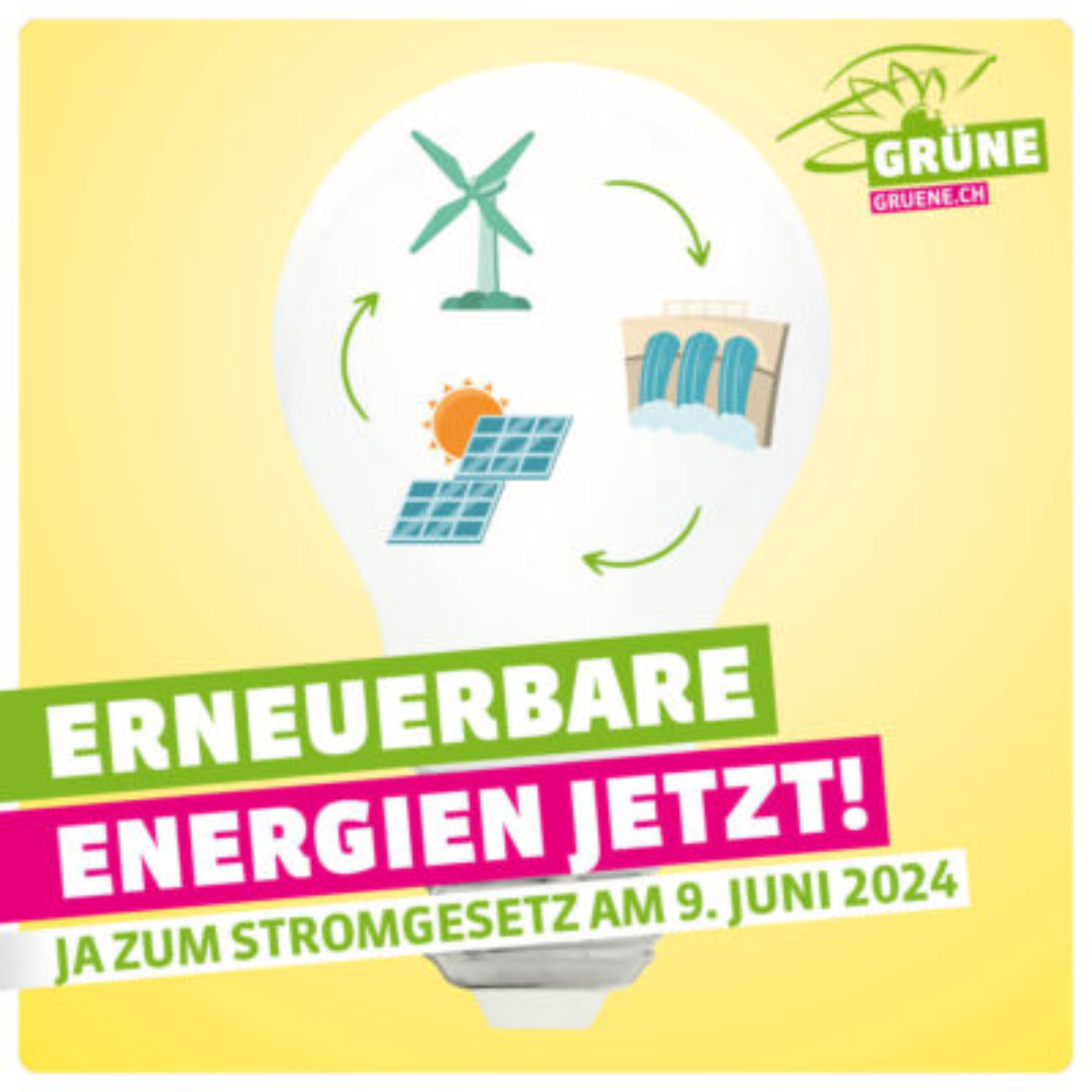 Die Grünen sagen Ja zu den beiden Energievorlagen. Die erneuerbaren Energien müssen durch gezielte Rahmenbedingungen nun rasch ausgebaut werden. Die notwendigen Massnahmen berücksichtigen die bestehende Infrastruktur und beeinträchtigen die Natur möglichst wenig. Sie fördern zudem die einheimische Wirtschaft.