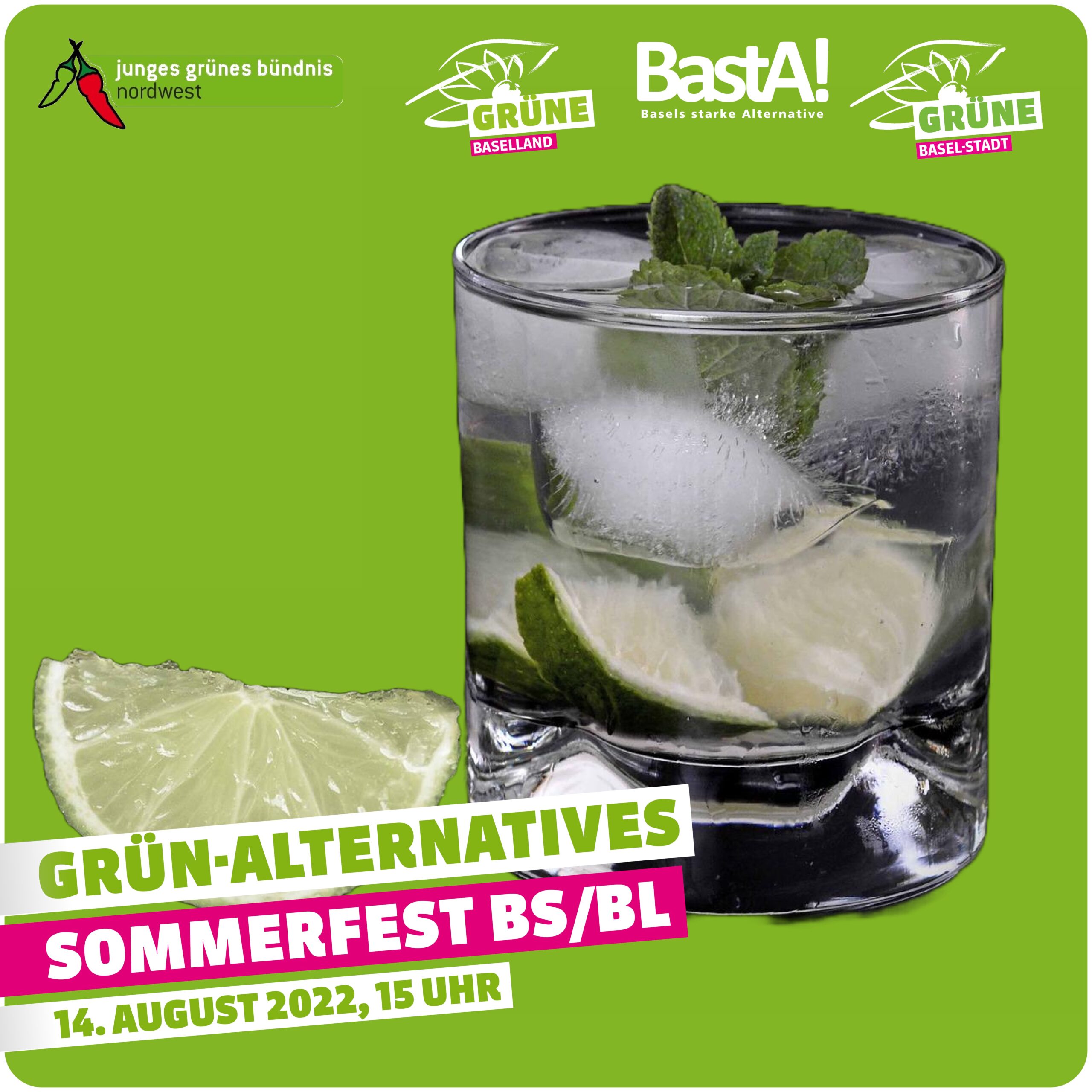 Front Page Somerfest Somerfest Sommerfest Grüne BL, mit Grünen BS und JGB 9. August 2025 | 17:00 – 23:00 Basel, Biobistro, Gundeldinger Feld, Bau 7 Dornacherstrasse 192, Basel